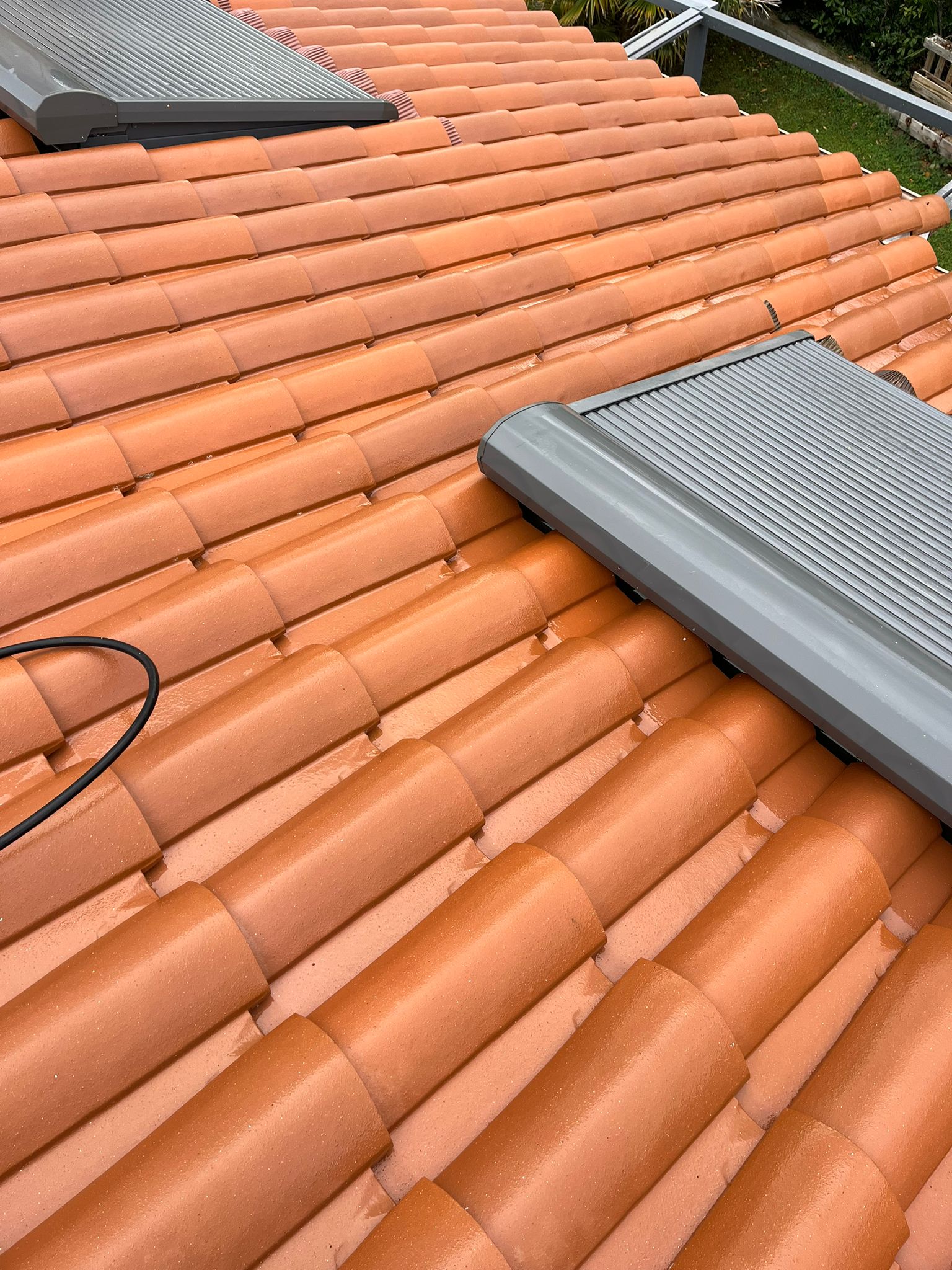 La mousse, le lichen et les salissures fragilisent votre toit avec le temps. Nous réalisons un nettoyage en profondeur et appliquons un traitement protecteur pour préserver l’état et la durabilité de votre couverture.